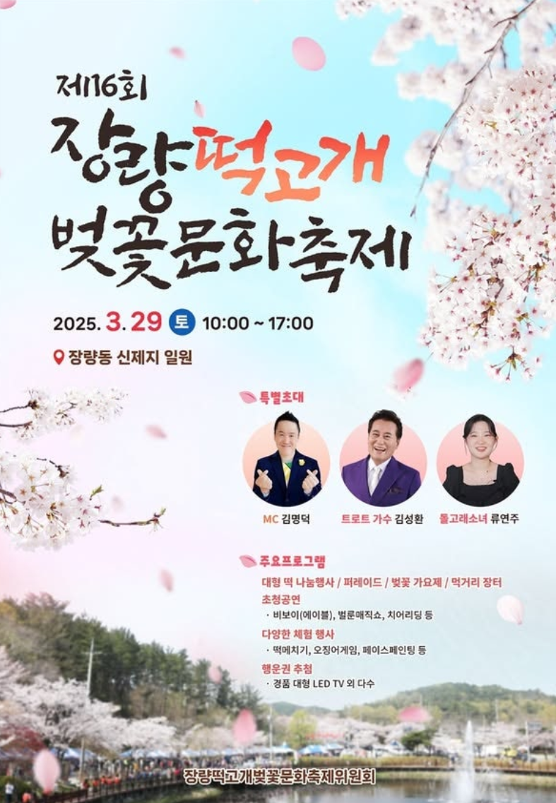 - 장량 떡고개 벚꽃 문화축제 (2025년 3월 29일) 무기한 연기
