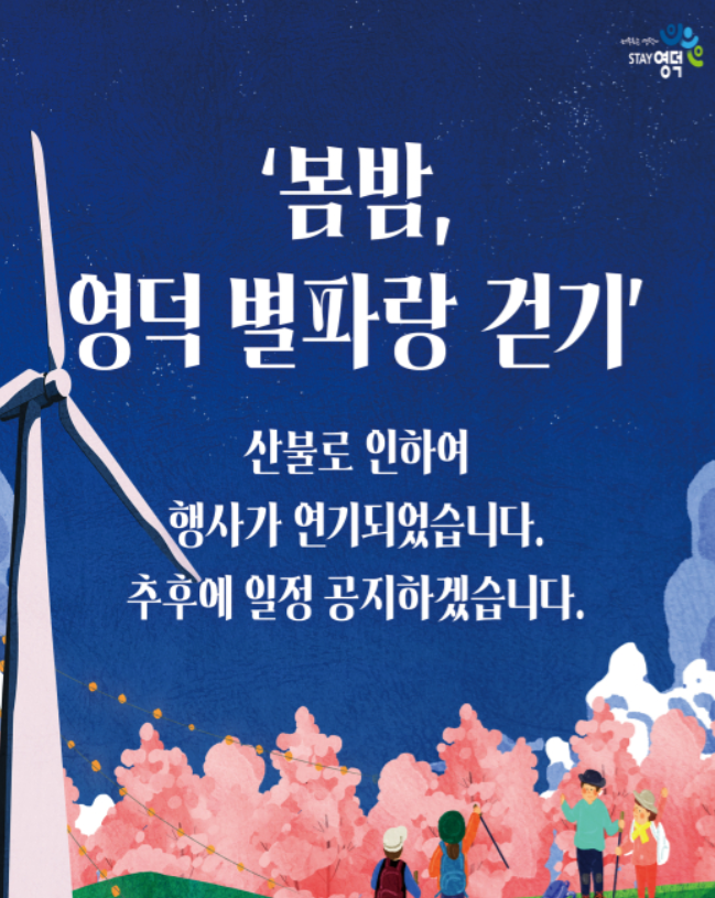 - 봄밤, 영덕 별파랑 걷기, 벚꽃 음악회 행사 (4월 5일) 연기