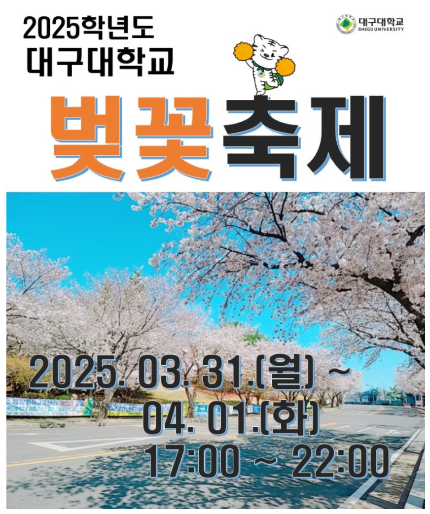 - 대구대 벚꽃 축제 (3월 31일~4월 1일) 잠정 연기