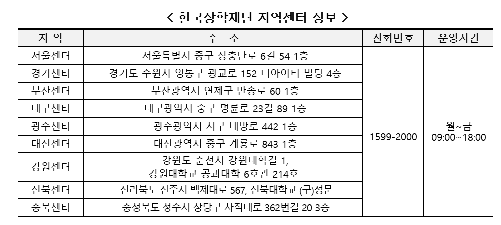 - 한국장학재단 고객센터: ☎ 1599-2000