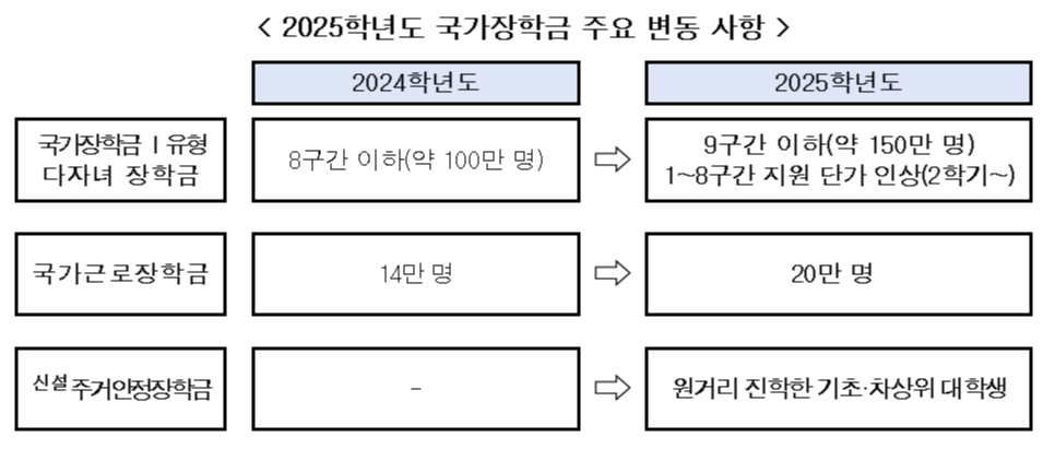 2025년 2학기부터 국가장학금Ⅰ유형 및 다자녀 장학금 지원액 인상!