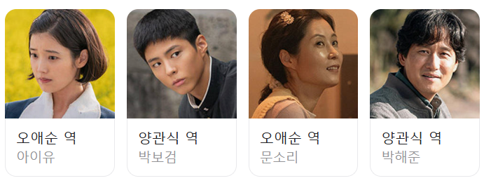 - 등장인물 : 아이유, 박보검, 문소리, 박해준