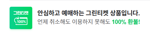 - 온라인 예매(네이버 예약 시) 최대 15% 할인 + 네이버페이 적립 + 취소하거나 이용하지 못해도 100% 환불(유효기간 내 미사용티켓, 유효기간 종료 후에는 환불 불가)이 가능한 상품으로 판매가 되고 있습니다.