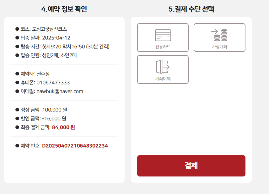 4. 예약정보 확인 및 결제 수단 선택 - 결제