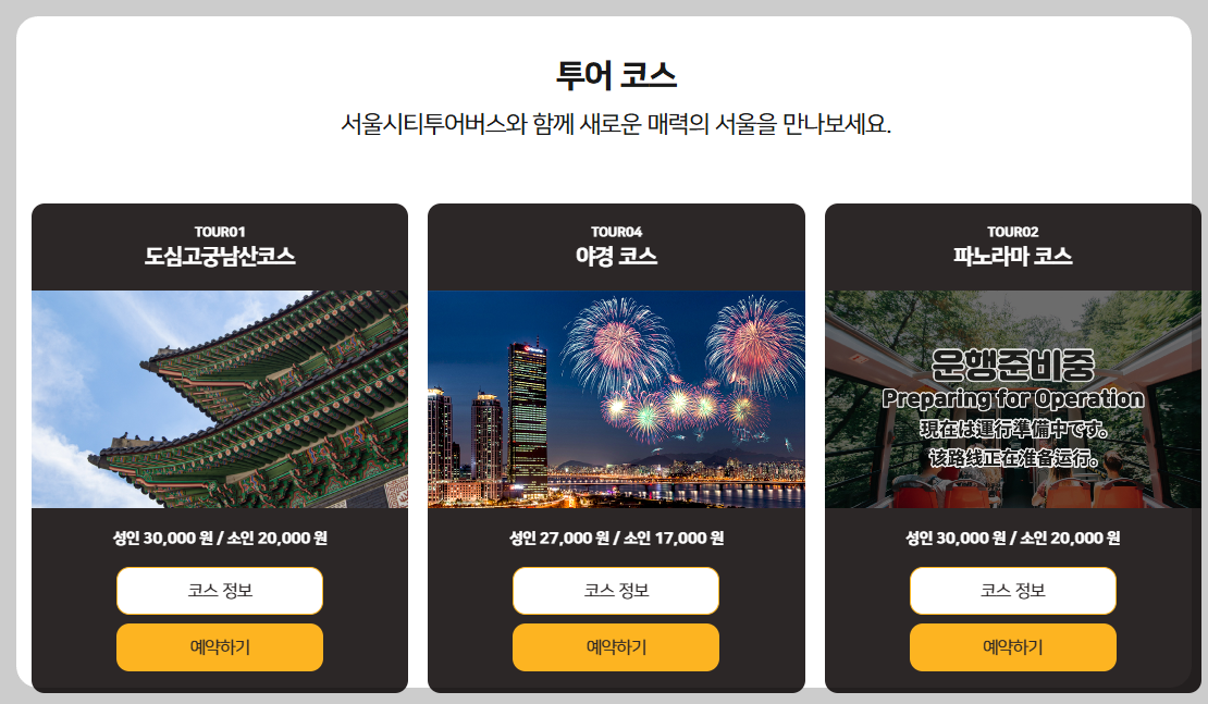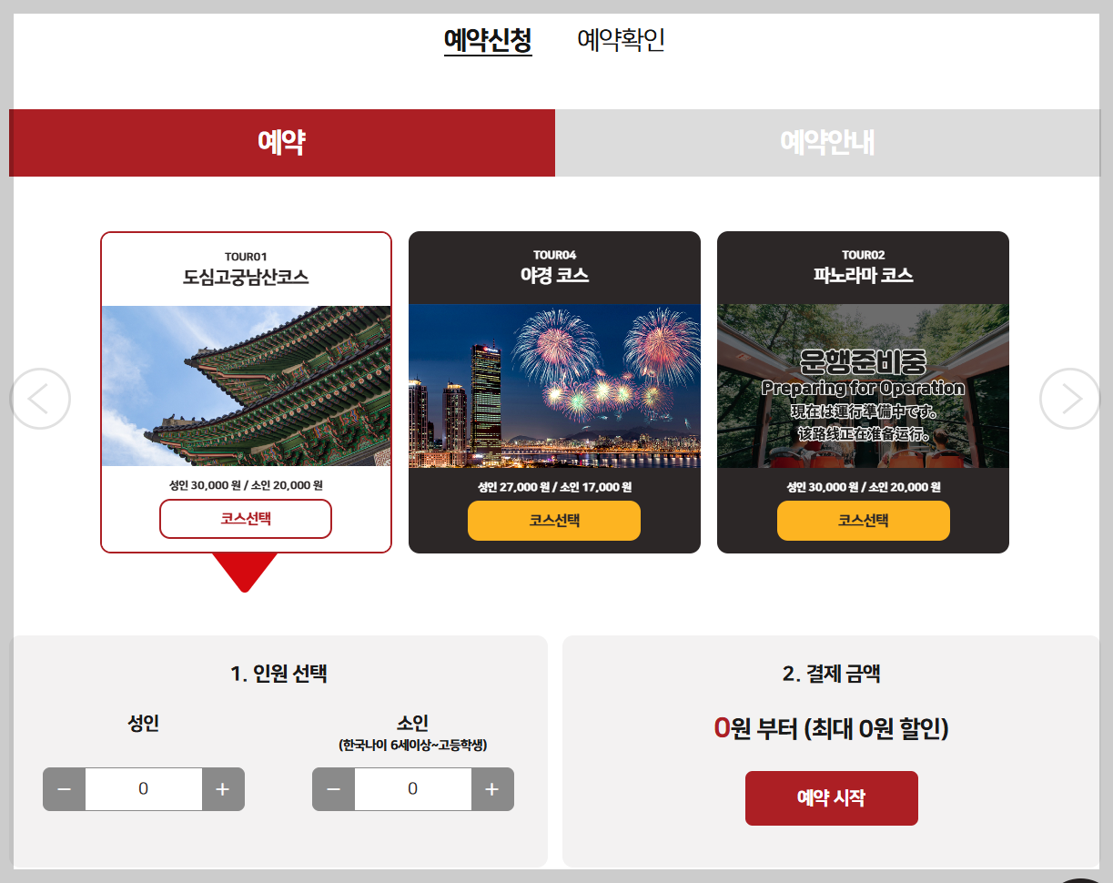 | 도심고궁남산코스 | 성인 | 30,000원 | 25,000원 |