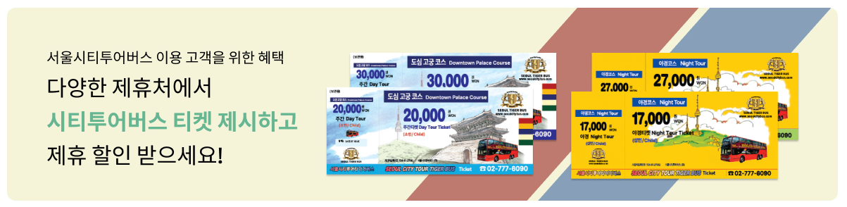 서울시티투어버스(타이거버스, 노랑풍선시티버스) 제휴 할인 업체 지도 첨부
