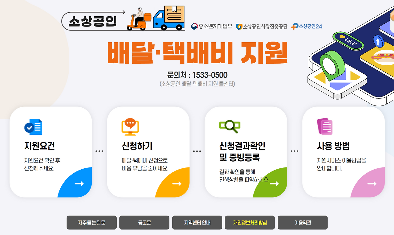 소상공인 배달·택배비 지원 콜센터(☎1533-0500)