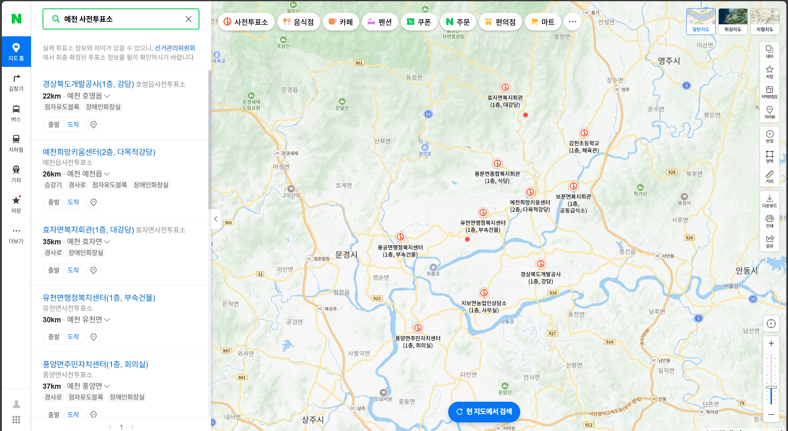 EX) 경북 예천 사전투표소 검색