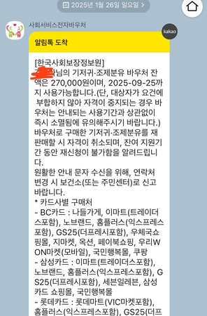| 바우처 재생성 | 25년 1월 26일 | 27만원(최초 바우처가 26일 기준이라 1월 26일에 다시 생성되었음) |