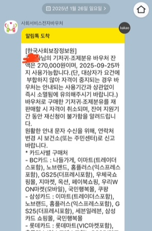 8) 1월 26일만 기다리다 카카오톡 알림 받음(27만원 바우처 생성)