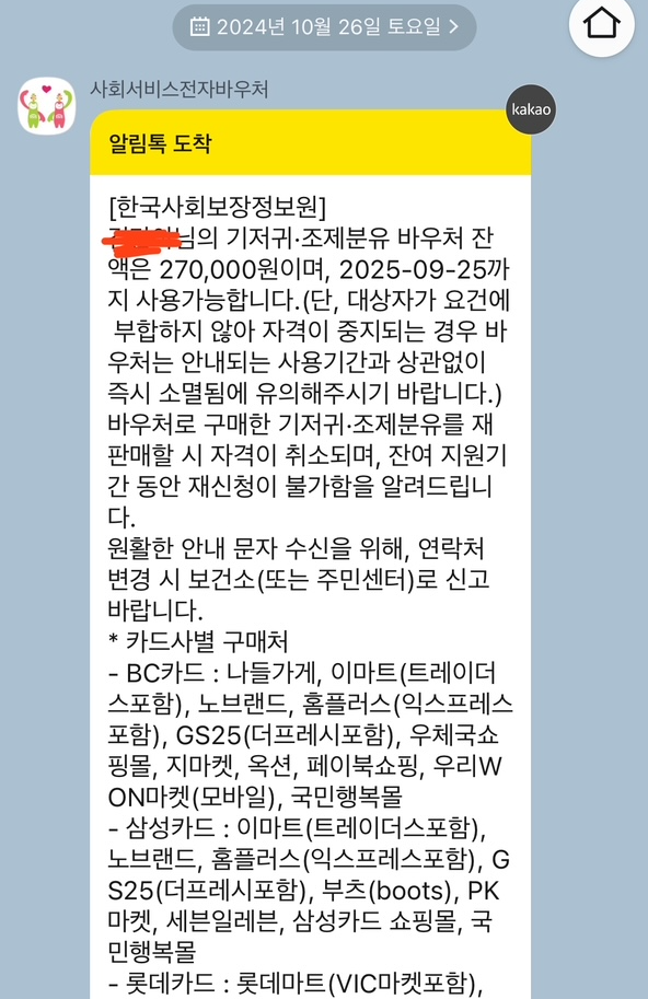 2025년 기저귀 또는 조제분유 바우처 카드사별 온라인/오프라인 사용처와 사용방법에 대해 알아보겠습니다. 국민행복카드 결제 취소 후 재결제 시 바우처 취소되는 기간이 2~3일 걸리기 때문에
