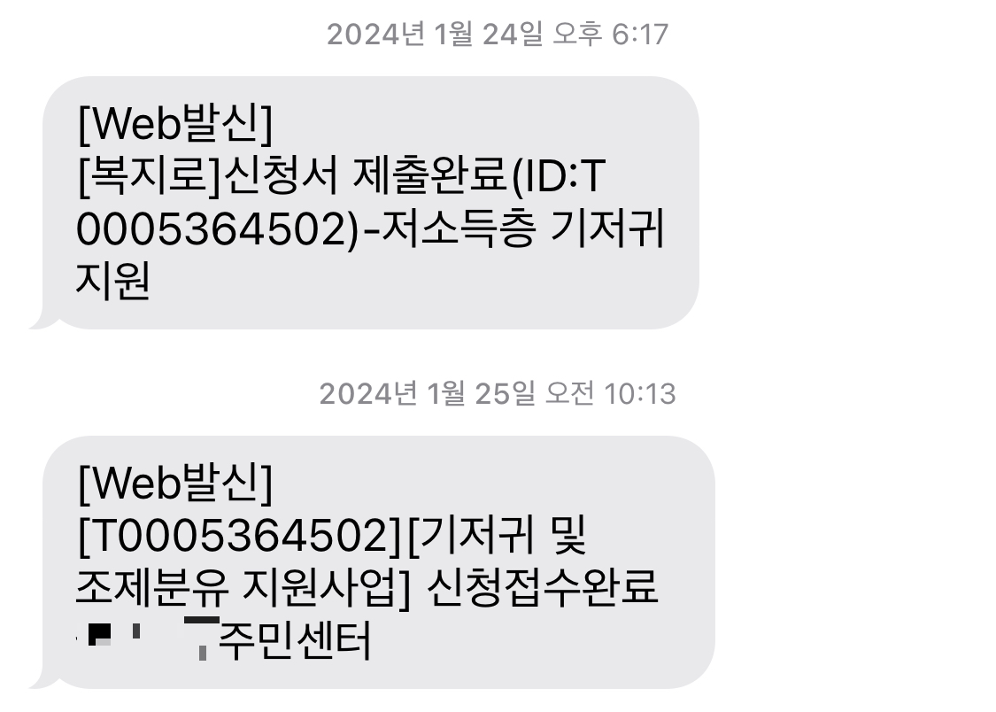 1) 둘째 아이가 23년 9월에 태어났고 23년에는 중위소득 80% 초과라 신청하지 않음