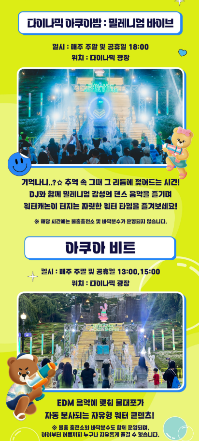 ① 메인공연 : 다이나믹 아쿠아밤, 아쿠아비트(행사기간 중 주말만)