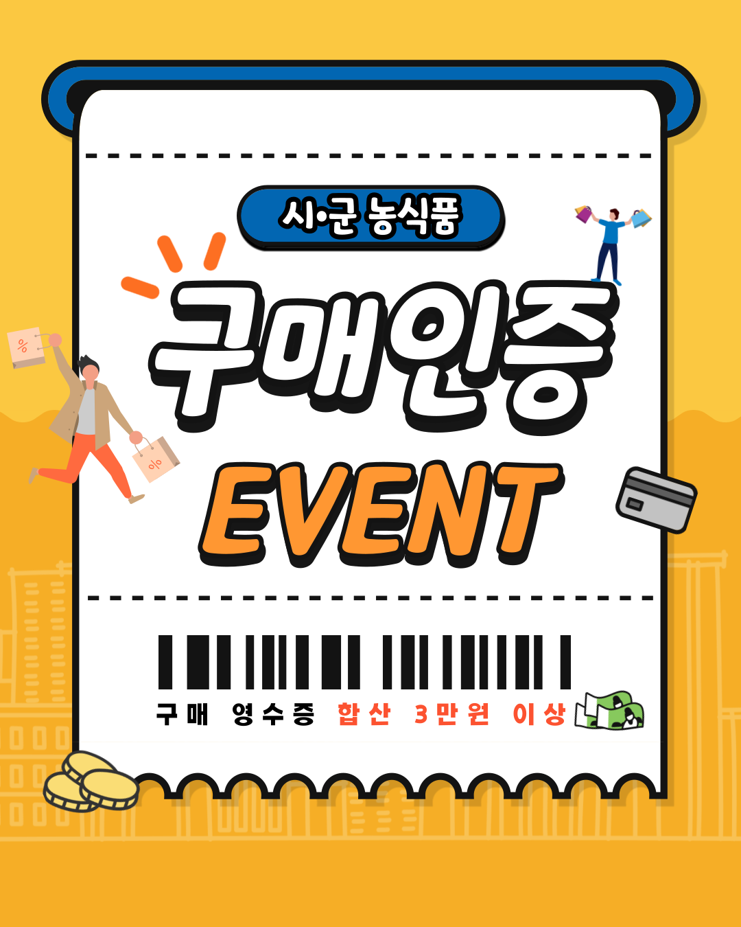 - 매일매일 구매 영수증 합산 3만원 이상 인증하고 경품권 받기
