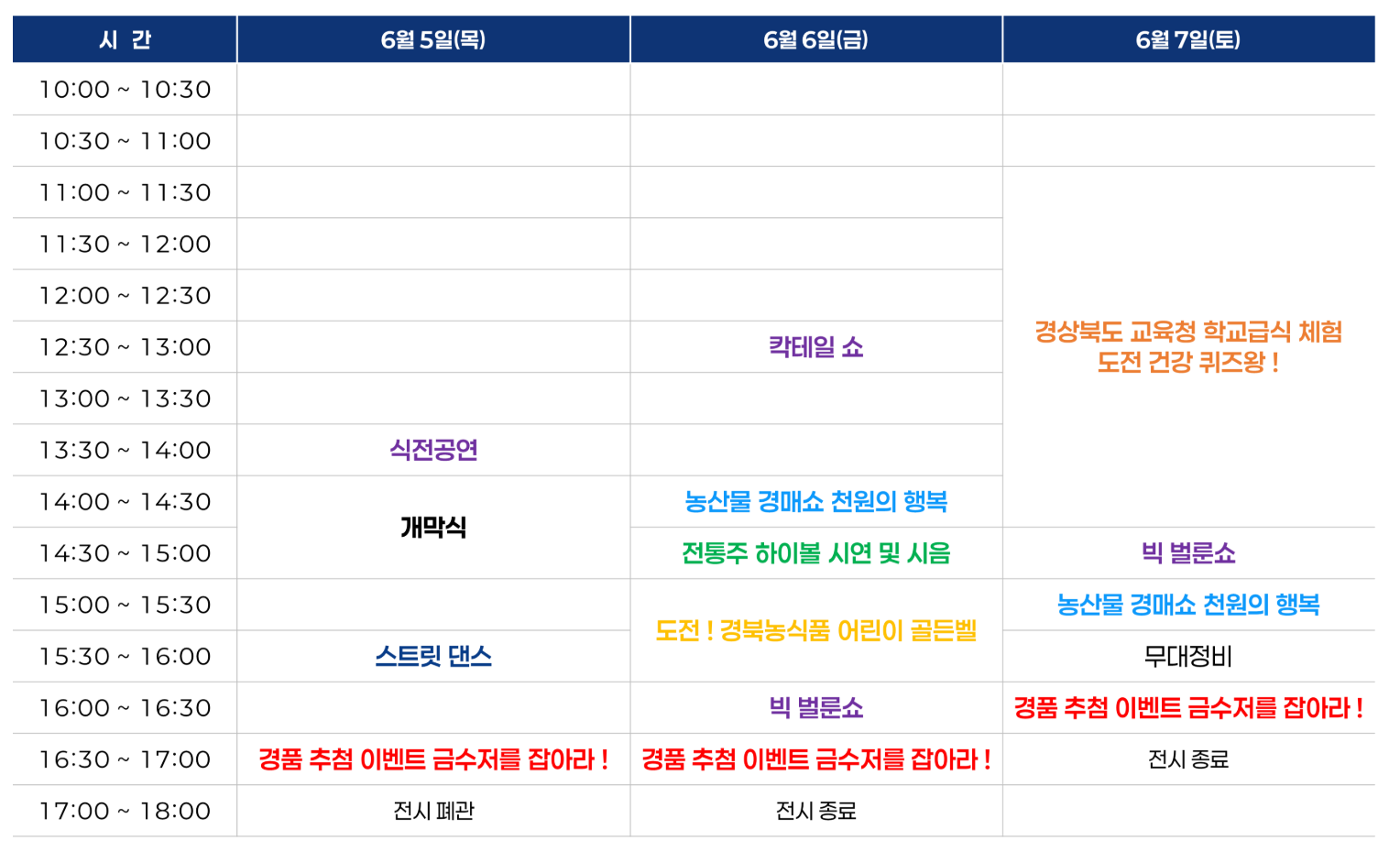 2025 경북 농식품 대전에서는 아래와 같이 행사가 진행됩니다.