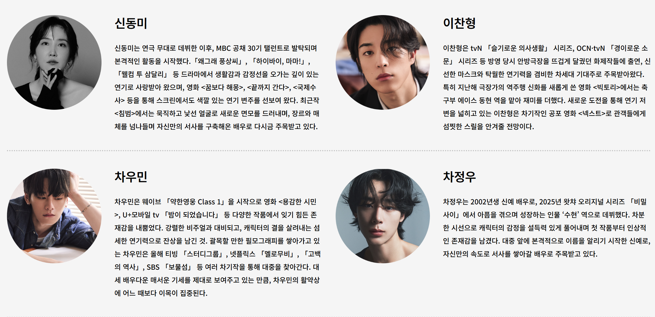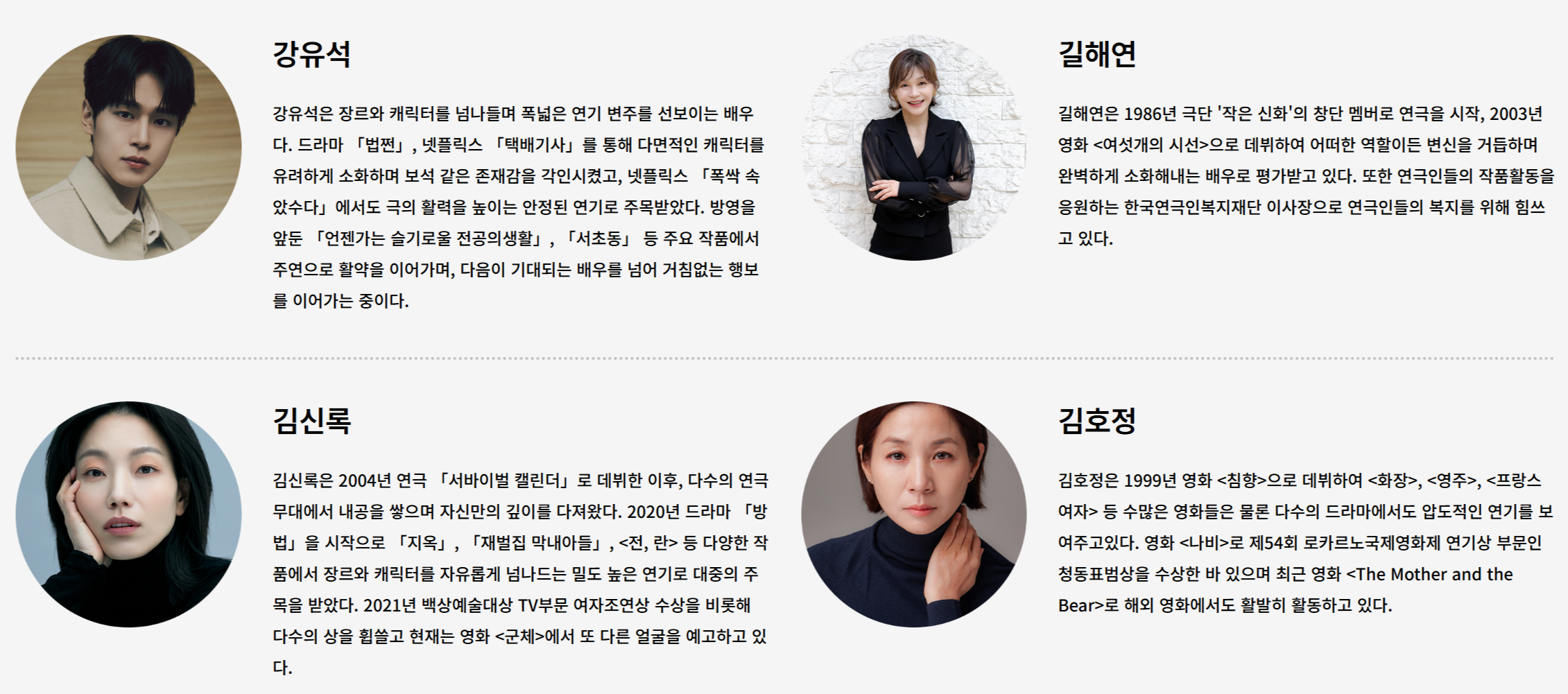 - 2025년 전주씨네투어X마중은 ‘저스트 엔터테인먼트’와 함께하며 12인의 배우들이 전주를 찾아 다양한 프로그램으로 관객과 만날 예정