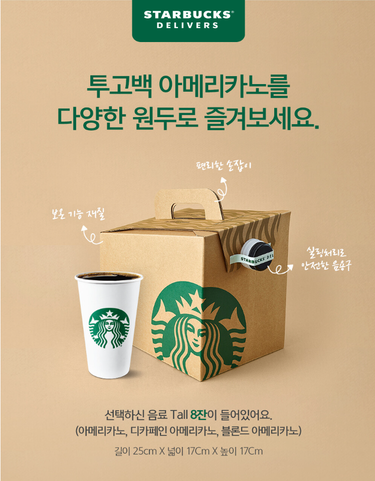 ※ 투고백은 들어가는 음료의 종류 x 음료 잔수(핫 8잔, 아이스 6잔)로 금액이 책정되며 대량구매라고 할인되지 않음
