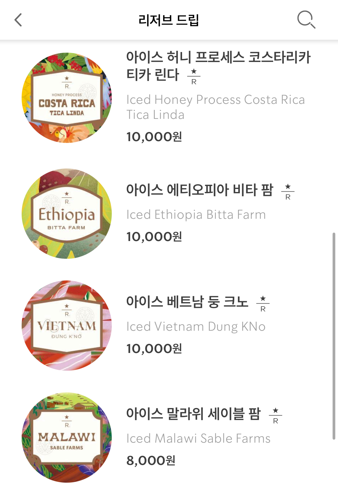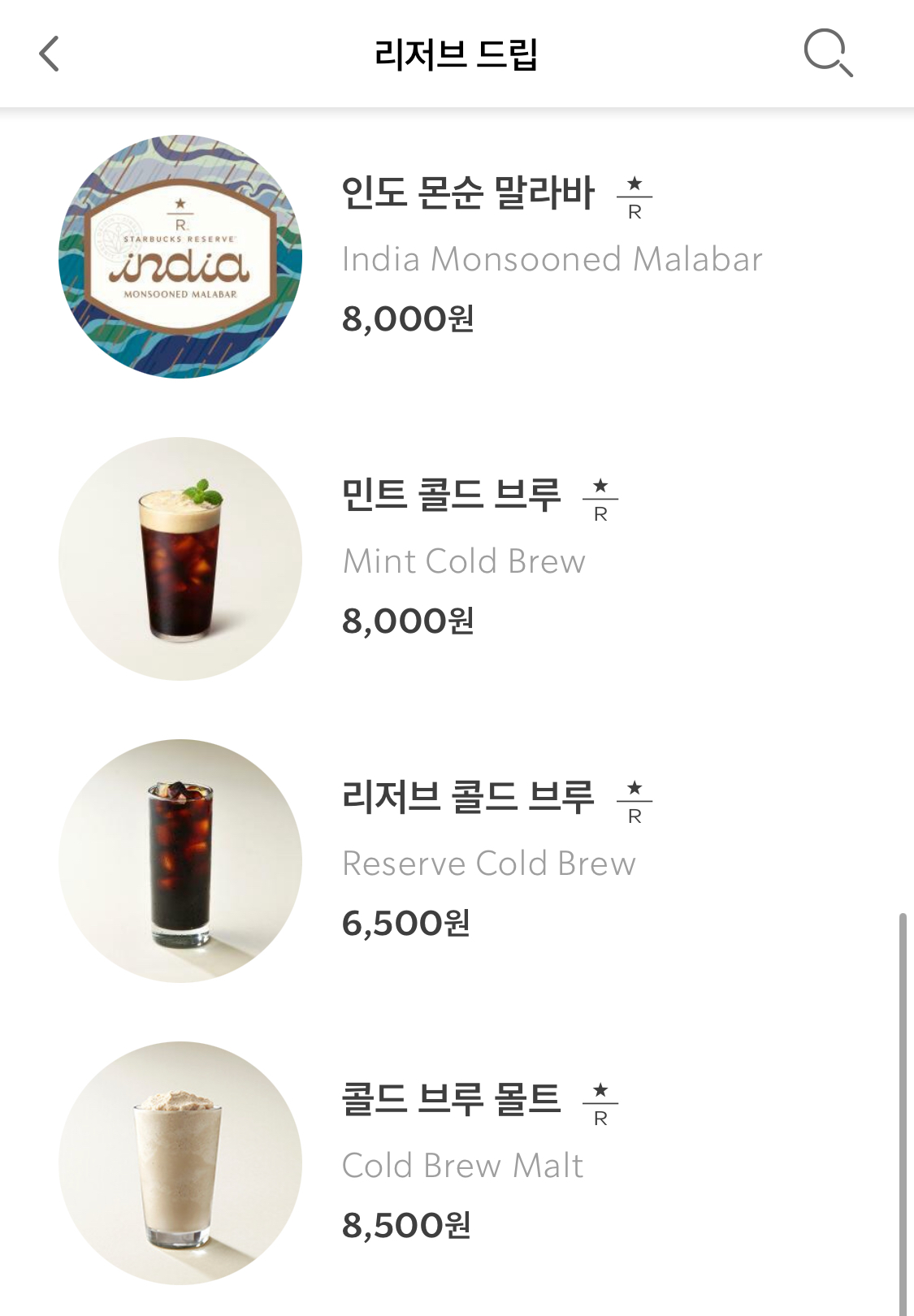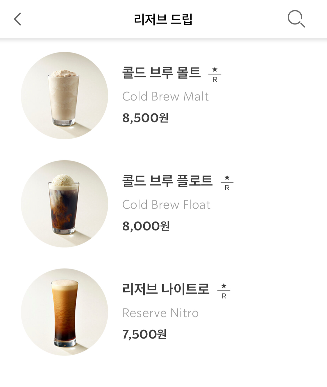 - [리저브 드립] 메뉴