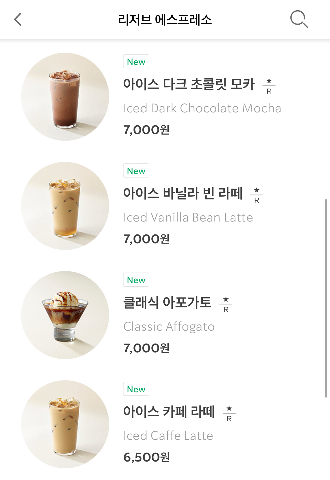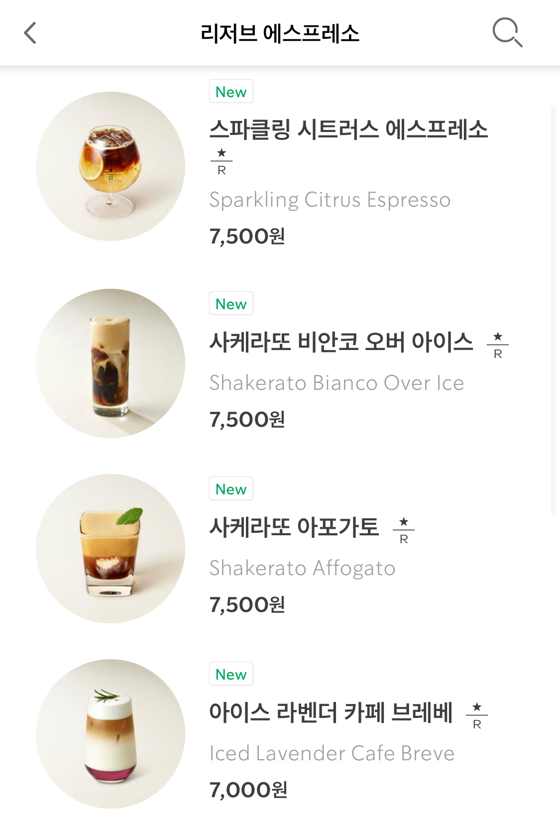- [리저브 에스프레소] 메뉴