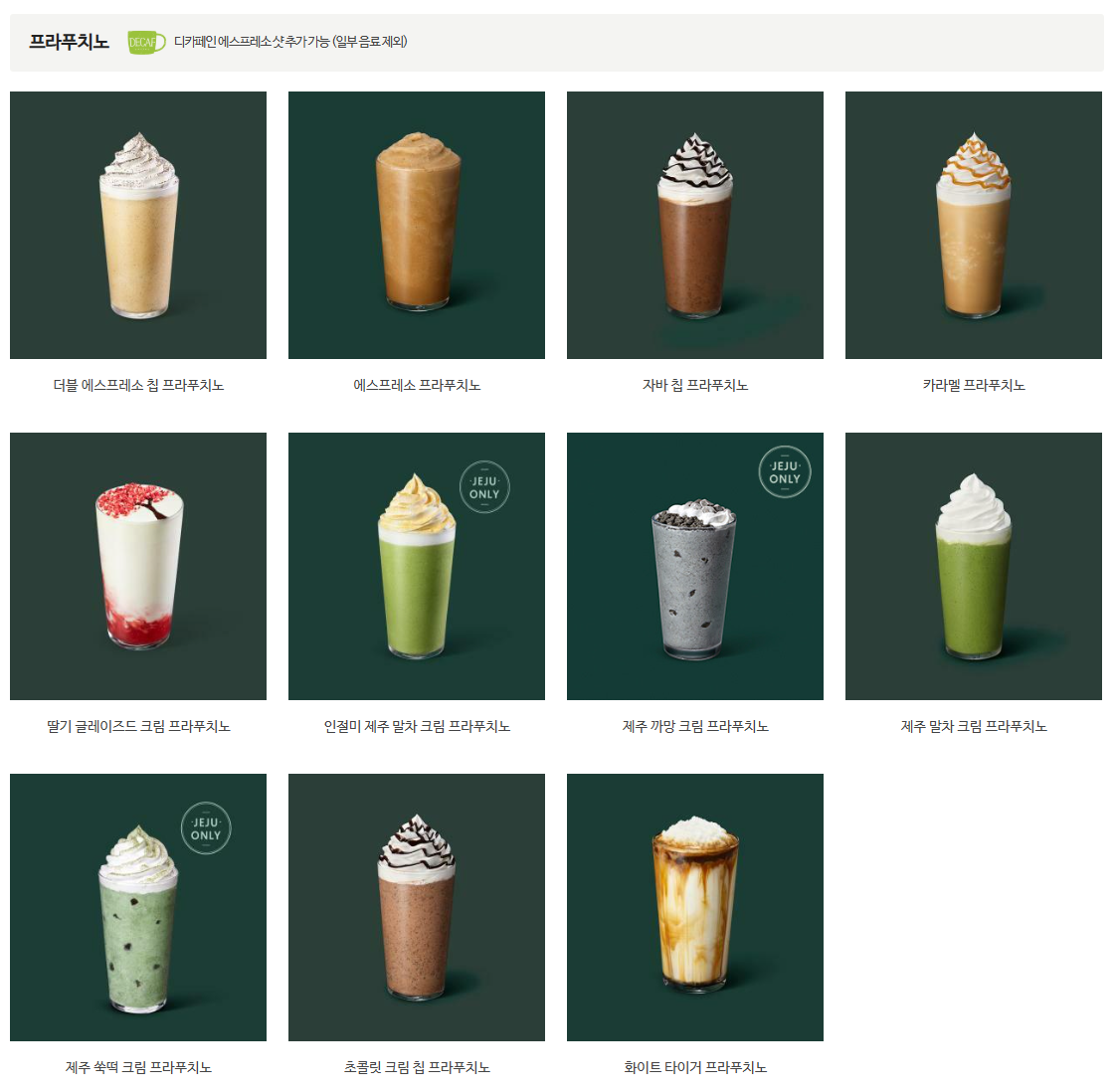 | 제주 말차 크림 프라푸치노 | 215 | 6,500 | 7,100 | 7,900 |